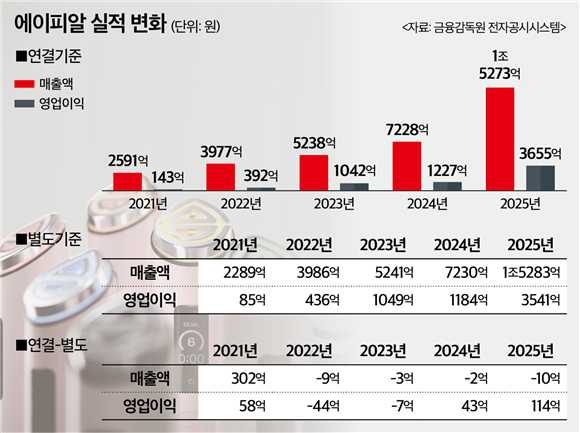 27일 금융감독원 전자공시시스템에 따르면 에이피알은 지난해 연결 기준 매출액 1조 5273억원을 기록하면서 직전년도(7228억원) 대비 2배 이상 외형이 성장했다. 같은 기간 별도 기준 매출액도 7230억원에서 1조 5283억원으로 증가했다.