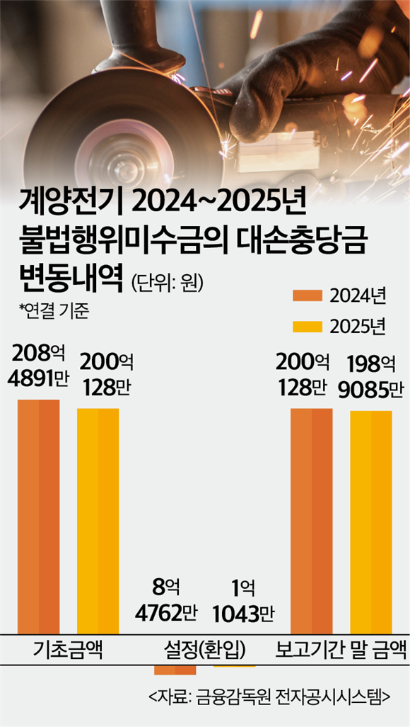 지난해 계양전기 사업보고서에 따르면 김 씨가 빼돌려 발생한 연도별 불법행위미수금 기초 잔액은 2017년 6억원에서 2021년 178억원으로 증가했으며, 2022년에는 횡령액이 추가로 인지되면서 최종적인 횡령액이 208억원까지 확대된 바 있다. 회사는 관련 미수금에 대해 전액 손실충당금을 설정했다.