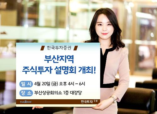 [뉴스토마토 이정하 기자] 한국투자증권은 오는 20일 오후 4시부터 부산광역시 상공회의소 1층 대강당에서 개인투자자를 위한 '부산지역 주식투자 설명회'를 개최한다.