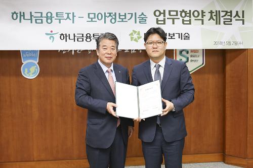 [뉴스토마토 이정하 기자] 하나금융투자는 모아정보기술과 업무협약을 체결했다고 3일 밝혔다.