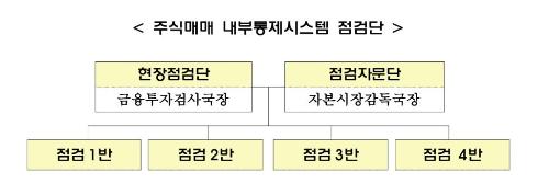 현장점검단은 강전 금감원 금융투자검사국장을 단장으로, 금융투자검사국 및 금융유관기관 직원(금융투자협회 2명, 한국거래소 2명, 한국예탁결제원 2명, 코스콤 3명) 등 24명이, 4개의 점검반으로 구성됐다.