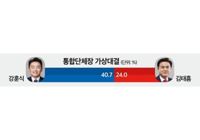 • (지선 여론조사)⑤통합단체장 가상대결, 강훈식 40.7% 대 김태흠 24.0%