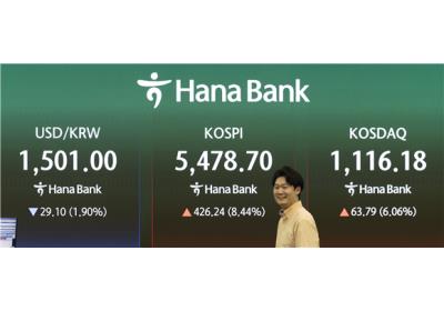 • 코스피, 종전 기대감에 8% 폭등…나흘 낙폭 하루 만에 만회