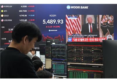 2026.04.02 17:19  국내 증시가 도널드 트럼프 미국 대통령의 '입'에 천당과 지옥을 오갔습니다. 종전 기대감에 5500선을 회복하며 출발했던 코스피는 트럼프 대통령의 대국민 연설 직후 최고점 대...