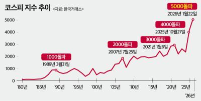 메뉴설정 홈 > 증권 > 증권일반 4000에서 5000까지 단 세 달…속도도 남달랐다 2026.01.22 17:13 코스피 지수가 사상 처음으로 장중 5000선을 돌파했습니다. 지난해 10월 4000선을 넘어선 지 불과 3개월 만으로, 46년 코스피 역사상 가장 빠른 상승 속도입니다. 윤석열정부 ... "반도체 슈퍼 사이클 업고 6000피 가능" 2026.01.22 16:36 코스피가 4950선에서 마감하며 역대 최고 종가 기록을 경신했습니다. 장중 5000포인트를 훌쩍 넘으며 한국 자본시장에 새 역사를 썼습니다. 4000포인트를 넘어선 지 3개월 ... [IB토마토](Deal모니터)A+ 신용 앞세운 SK디스커버리…차환으로 이자 절감 2026.01.22 15:51 SK디스커버리(006120)가 무보증 사채를 발행해 채무상환 자금을 마련한다. 주력 자회사의 안정성과 신용을 기반으로 한 배당 수익이 꾸준히 발생하고 있어 높은 신용등급을 보유... [이토마토] 김봉만 전문가, 2026년 변동성 장세의 해답을 제시하다! 2026.01.22 15:12 일자: 1월 29일(목)/ 2월 5일 (목) 시간: 오후 8시 ~ 10시 (총 2시간) 수강료: 44만원■ 오늘의 종목 추천 TOP 5#skc 한화오션(042660) 코스모신소재(005070)... (부음)이재근(금융투자협회 대외협력팀장)씨 부친상 2026.01.22 10:28 △이국희(세일내산 회장)씨 별세, 이재근(금융투자협회 대외협력팀장) 이재명(세일 대표)씨 부친상, 박희정씨 성동아(교사)씨 시부상 -빈소: 광명성애병원장례식장 301호-발인: 2026년 ...  삼성전자, 장중 16만원 터치 2026.01.22 10:27 삼성전자(005930)가 장 초반 3% 넘게 급등하며 16만원선에 바짝 다가섰습니다. 간밤 뉴욕증시에서 주요 반도체 종목들이 일제히 급등한 영향으로 풀이됩니다. 22일 한국거래소... '오천피' 시대 열렸다…코스피 5000선 첫 돌파 2026.01.22 09:13 코스피가 5000선을 돌파했습니다. 한때 5015.73까지 올라 장중 기준 최고치를 경신했습니다. 그린란드 영유권을 두고 미국과 유럽 간 긴장감이 완화되며 뉴욕증시가 일제히 상... [IB토마토]윙스풋, 러닝화 '페슈라'로 체질 개선…흑자 전환 시동 2026.01.22 06:00 신발 생산·유통 전문 기업 윙스풋(335870)이 수익성 개선을 위한 사업 구조 재편에 나섰다. 기존 부츠 브랜드 ‘베어파우’를 정리하고 전문 러닝화 브랜드 ‘페슈라(FESSURA)... 주가 방어용 시세조종에 내부자 거래까지…금융당국 칼 빼들었다 2026.01.21 17:32 상장사 지배주주가 담보 주식 반대매매를 막기 위해 시세조종 주문으로 주가 하락을 방어하고, 증권사 직원이 공개매수 미공개정보를 이용해 부당이득을 챙긴 불공정거래가 금융... '트럼프 리스크'에도…코스피, 4900선 회복 2026.01.21 16:39 트럼프발 그린란드 리스크에도 코스피가 4900선을 회복하면서 종가 기준 역대 최고치를 갈아치웠습니다. 코스피는 하루 종일 냉탕과 온탕을 오갔으나 자동차와 반도체 등 코스... 반도체·방산·로봇 다 올랐다…종착지는 그룹주 2026.01.21 16:38 반도체·방산·로봇 등 주도 테마가 빠르게 교체되는 순환매 장세 속에서 증시 자금의 흐름이 개별 종목에서 대기업 그룹주 상장지수펀드(ETF)로 이동하는 양상이 나타나고 있습...  현대차, 증권가 목표가 상향에 5% 급등 2026.01.21 09:55 현대차(005380)가 장 초반 5% 가까이 오르며 시가총액 102조원을 돌파했습니다. 증권가의 파격적인 목표주가 상향 전망이 투자심리를 자극한 영향으로 분석됩니다. 21일 한국거... [이토마토] 단기 매매를 넘어, 장기 전략으로 거액자산가 도전… 최병운 전문가 투자클럽 2026.01.21 09:35 주식은 꿈이자 생물, 장기 전략의 중요성주식 투자를 장기적인 관점에서 바라보는 개인 투자자들이 늘어나면서, 체계적인 전략과 투자 철학을 중시하는 투자 교육 프로그램에도 관... 코스피, 관세전쟁 우려에 1% 급락 출발 2026.01.21 09:19 코스피가 장 초반 1% 넘게 급락 출발한 뒤 낙폭을 일부 만회하고 있습니다. 그린란드를 둘러싼 미국과 유럽연합(EU)의 관세전쟁 우려가 재부각되면서 간밤 뉴욕증시가 급락한 영향 ... [IB토마토](해외투자 제동)②해외주식으로 컸지만…토스·키움, 서로 다른 탈출구 2026.01.21 06:00 토스증권과 키움증권(039490)은 해외주식 투자 열풍의 최대 수혜사다. 양사 모두 플랫폼 편의성을 기반으로 한 시장 점유율 확보에 성공했고 이는 곧 안정적인 브로커리지 수익... 자사주 소각 의무화 초읽기…거래소 '시총 산정 방식' 손질 불가피 2026.01.20 17:27 자사주 소각 의무화를 담은 3차 상법 개정안이 국회 심사를 앞둔 가운데 한국거래소의 시가총액 산정 방식 손질이 불가피해 보입니다. 기존에는 한국거래소가 국내 시가총액이 자... '5000피' 눈앞서 숨 고른 코스피…13일 랠리 멈췄다 2026.01.20 17:21 연초 이후 가파른 상승 랠리를 이어오던 코스피가 차익실현 매물 출회로 13거래일 만에 하락 마감했습니다. 미국 증시 휴장과 지정학적 불확실성이 맞물리며 장중 변동성이 확대됐... [IB토마토](크레딧시그널)메리츠금융지주, 홈플러스 사태에 건전성 '직격타' 2026.01.20 17:14 홈플러스 사태에 메리츠금융지주(138040)가 직격탄을 맞았다. 앞서 메리츠금융지주는 산하 계열사를 통해 홈플러스의 대출금 리파이낸싱 딜에 참여했다. 하지만 지난해 3월 홈... [IB토마토](IPO인사이트)에스팀, 모델에서 콘텐츠로…해외 시장 정조준 2026.01.20 16:2
