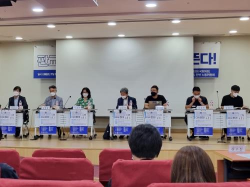 13일 여의도 국회에서 '윤석열 정부의 노동시간 유연화 정책 대응 토론회가 열렸다. 이날 참석한 패널들이 토론에 나서는 모습. (사진=이선율 기자)