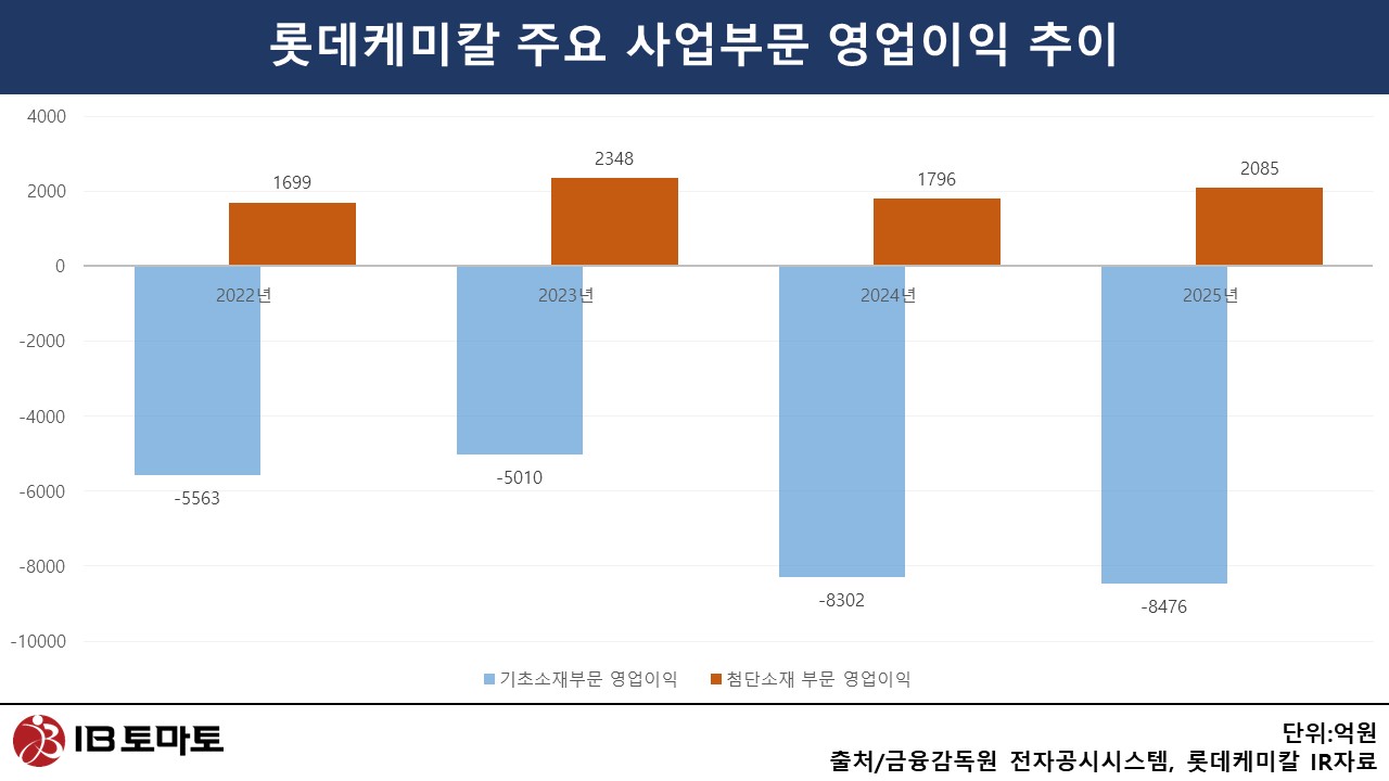 관건은 실적 반영 시점과 수익성이다. 롯데케미칼은 지난 2022년부터 4년 연속 영업적자를 이어오고 있다. 2022년 마이너스(-)7626억원에서 2023년 -3477억원, 2024년 -8941억원, 지난해 -9436억원을 기록했다.