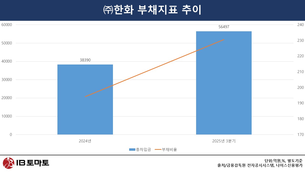 이에 따라 부채 지표도 빠르게 악화됐다. 별도 기준 총차입금은 2024년 3조8390억원에서 지난해 9월 말 5조6497억원으로 증가했다. 이 기간 부채비율 역시 194.3%에서 230.7%로 상승했다.