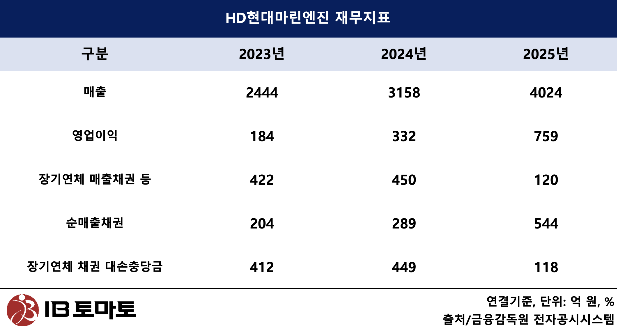[IB토마토 정준우 기자] HD현대마린엔진(071970)(이하 현대마린엔진)이 지난해 STX중공업 시절의 장기 연체 매출채권을 대거 제각(회계장부에서 지우는 작업)했다. STX중공업 중국법인 청산에 따른 장기 부실채권을 정리하고, 그룹 경영 성과를 온전히 반영할 수 있는 재무적 기반을 마련한 것이다. 과거 부실 채권이 대거 정리되면서 지난해 회사 채권 구조는 정상 채권 중심으로 채워졌다. 현대마린엔진이 지난해 가파른 실적 성장세를 보였다는 점을 고려하면, 지난해가 적극적인 부실 자산 정리 적기였다는 평가가 나온다.