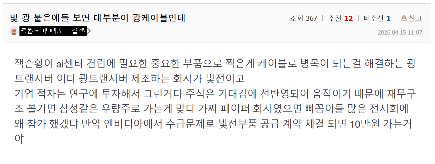 빛과전자 주주게시판 캡쳐 내용 (사진=네이버)