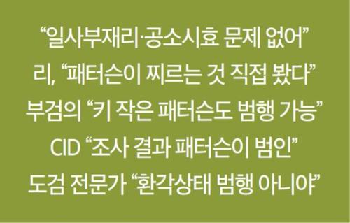 이날 이 교수에 이어 증인으로 선 혈흔분석 전문가 이모 경위도 검찰 측 주장에 유리한 증언을 했다. 이 경위는 조씨 몸에 난 상처와 깊이를 봤을 때 아무리 짧은 순간이라도 가해자에게 많은 피가 묻게 됐을 것"이라고 말했다. 당시 검찰 조사에서 패터슨이 리 보다 훨씬 많은 양의 피를 뒤짚어 쓴 것으로 확인됐다.