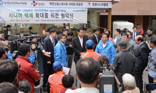 박원순 서울시장이 지난해 10월 서울 은평구의 한 아파트에서 ‘은평시니어클럽’ 회원들을 만나 대화를 나누고 있다. 사진/뉴시스