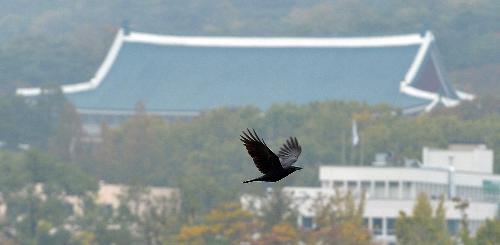 박근혜 대통령, 최순실, 미르-K스포츠 재단과 관련한 수많은 의혹들로 전국이 '국정농단' 혼란을 겪고 있는 지난 26일 오후 서울 삼청동에서 까마귀 한 마리가 청와대 앞으로 날고 있다. 사진/뉴시스