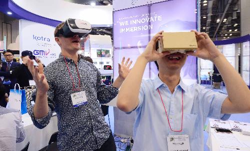 소비자들이 VR기기를 체험하고 있다. 사진/뉴시스