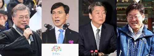 야권 대선주자들이 3.1절을 맞아 한목소리로 촛불집회의 민의를 받들어 적폐청산이 이루어져야 한다고 강조했다. (왼쪽부터) 1일 더불어민주당 문재인 전 대표, 안희정 충남지사, 국민의당 안철수 전 대표, 이재명 성남시장. 사진/뉴시스