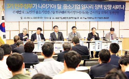 이승길 아주대 법학전문대학원 교수는 "중소기업 일자리를 늘리기 위해서는 근로시간 단축과 최저임금 인상, 비정규직 관련 법안 등 관련 법과 제도가 정비되는 것이 우선"이라고 주장했다.
