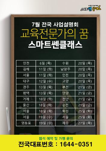 이번 설명회는 서울, 인천, 울산, 제주 등 17개 지역에서 오는 27일까지 열린다. 교육 사업 창업자들을 위해 교육 시장 분석 등 최신 교육 정보와 함께 스마트쎈클래스 가맹사업에 대해 설명할 계획이다. 상권분석, 학부모 설명회 등 전문가의 일대일 운영 컨설팅은 물론 교실 물품, 인테리어 소품 등 초도물품을 제공한다. 또한 정기적인 교사 교육을 통해 학습관 운영에 유용한 정보를 공유할 방침이다. 스마트쎈클래스는 학원이나 공부방 형태로 운영 가능하다.