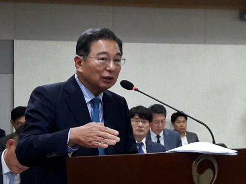 양규모 KPX 회장이 12일 고용부 국정감사에 증인으로 출석했다. 사진/한정애 더불어민주당 의원