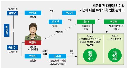 예보가 대유에 특혜를 준 데는 대유가 박근혜 전 대통령의 친인척 기업이라는 배경이 작용했으리라는 게 금융투자업계의 관측이다. 대유의 박영우 회장은 박 전 대통령의 조카사위다. 박 전 대통령은 당시 18대 대선을 불과 6개월여 앞둔 유력 대선주자였다. 특히 대유와 박 전 대통령의 인맥을 따라가면 의혹은 더 짙어진다. 당시 예보 사장인 김주현씨(재임기간 : 2012년 5월~2015년 5월)는 박 전 대통령의 동생인 지만씨와 고교 동창으로 절친한 사이로 알려졌다.