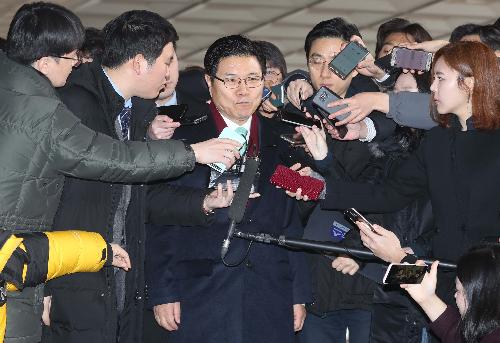 불법 정치자금 수수 의혹을 받고 있는 자유한국당 홍문종 의원이 9일 오전 서울 서초구 서울중앙지검에 피의자 신분으로 출석하며 취재진에게 질문세례를 받고 있다. 사진/뉴시스