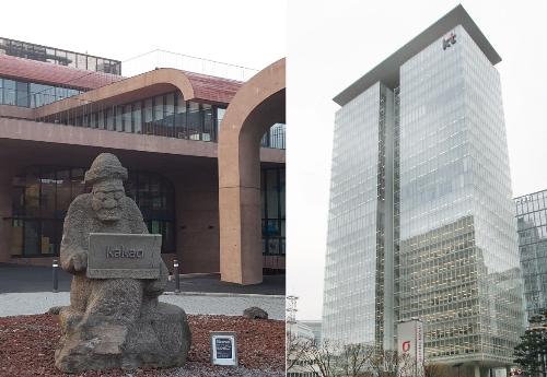 국내 첫 인터넷 전문은행으로 선정된 카카오 뱅크의 다음 카카오 제주 본사(왼쪽)와 K뱅크의 KT 광화문 본사. 사진/각사