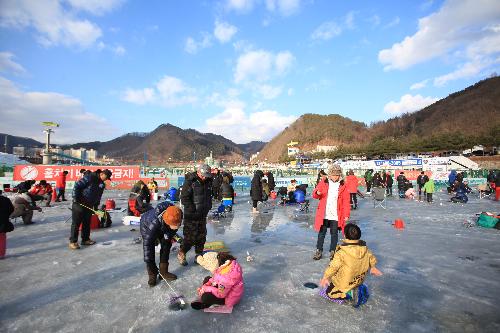 지난 주 9일부터 시작된 화천 산천어축제장을 찾아간다. '2016 얼음나라 화천 산천어축제'는 화천천 일원에서 오는 31일까지 23일간 열린다. 읍내로 드니 꽁꽁 언 화천천 방향으로 사람들이 무리지어 향한다. 먼 곳에서 달려온 겨울마니아들이 맨 앞에 서고, 그 뒤를 따라 아이들을 꽁꽁 싸맨 가족단위 체험객들이 줄을 잇는다. 이미 일반 얼음낚시터 예약은 동이 났고, 외국인 전용 낚시터에도 벽안의 강태공들이 자리를 잡고 앉아있다. 가장 신나는 곳은 산천어맨손잡기 체험장이다. 산천어를 맨손으로 잡아쥔 이들의 함성이 연이어 터진다. 얼음썰매장, 봅슬레이 눈썰매장, 집라인 코스도 북새통이다. 아시아 빙등 광장과 세계 겨울도시 광장, 야경이 아름다운 중앙로의 선등 거리에도 발걸음이 이어지고 있다. 맨손잡기, 루어낚시, 봅슬레이, 얼음조각광장 등 70여개 프로그램이 다양하게 꾸며져 있다. 특히 올해부터는 '야간 얼음낚시'가 처음으로 도입되었다. 오후 7시부터 9시까지 즐길 수 있다.