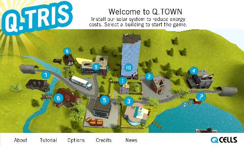 5일 업계에 따르면, 한화큐셀은 지난 2012년 출시한 퍼즐게임 '큐트리스(Q.TRIS)'에 대해 업그레이드 작업을 진행하고 있다. 이전까지 영어로 된 게임만 있었는데, 한국어 버전을 만들어 이르면 올해 말 출시를 목표로 하고 있다. 이 게임은 초록빛 마을에 모여있는 10여개 건물의 지붕에 누가 태양광 모듈을 더 빠르게, 많이 설치하는 지를 겨루는 퍼즐 게임이다. 테트리스처럼 '일자(ㅡ)' 혹은 '기억자(ㄱ)' 등 갖가지 모양의 모듈이 나오면, 이를 지붕 위로 옮겨 빠르게 설치하고 그 만큼 가상의 돈이 쌓인다.