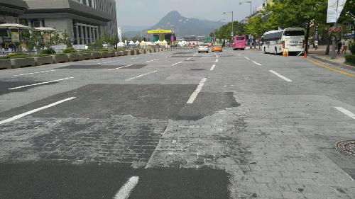 하지만, 울퉁불퉁한 돌 포장이 광화문 광장 양쪽을 오가는 차량의 속도를 줄여 줄 것이라는 ‘핑크빛 기대’는 정작 도로가 차를 견디지 못하면서 8년만에 수포로 돌아갔다.
