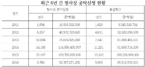 국회 법제사법위원회 간사인 더불어민주당 박범계 의원은 6일 광주고법에서 열린 대전고법 등에 대한 국정감사에서 2011년 1894건에 머물렀던 형사 공탁 신청이 2015년 1만5447건까지 늘면서 최근 6년간 7배 이상 증가했다고 밝혔다.