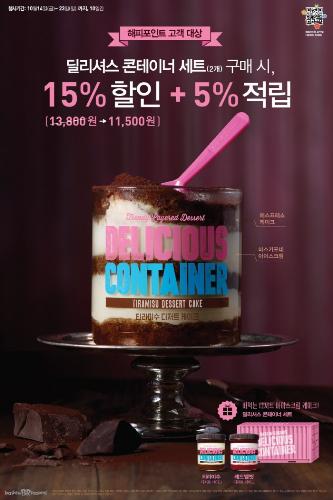 이번 행사는 딜리셔스 콘테이너 2종 세트 구입 시 15% 할인 및 결제 금액의 5% 적립 혜택을 제공하는 행사다. '딜리셔스 콘테이너' 2종을 1만3800원(각 6900원)에서 2300원 할인된 1만1500원에 구매 가능하다.