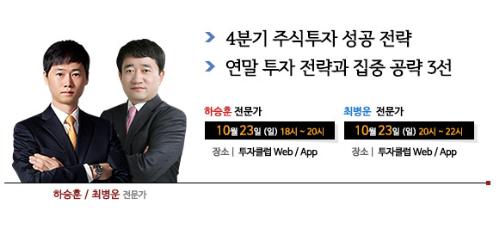 온라인에서 하승훈 전문가는 '4분기 주식투자 성공 전략' 이라는 주제로, 최병운 전문가는 '연말 투자 전략과 집중 공략 3선' 이라는 주제로 강연할 예정이다.