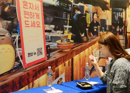 한 서울 시민이 혼밥(혼자 밥먹는 행위)를 체험하고 있다. 사진/뉴시스
