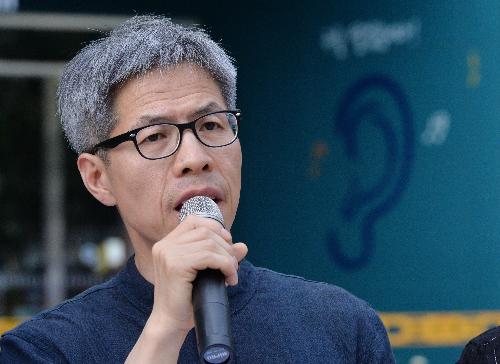 지난 6월 서울 중구 세종대로 서울시청 앞에서 구의역 참사 시민대책위 진상조사단 구성과 관련해 서울시 정무부시장과 면담을 마친 권영국 변호사가 면담 결과를 발표하고 있다. 사진/뉴시스