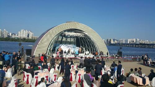여의도 물빛무대 작은 결혼식장은 한강 물 위에 떠있는 수상무대로 공연이나 페스티벌이 접목된 이색 예식을 진행할 수 있는 매력적인 장소다. 또 지난해부터 결혼식 장소를 반포한강공원 서래섬으로까지 확대 운영하고 있다.