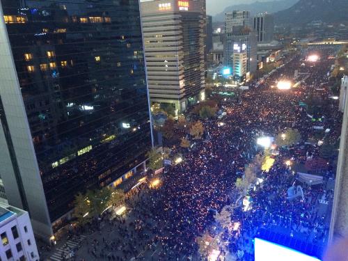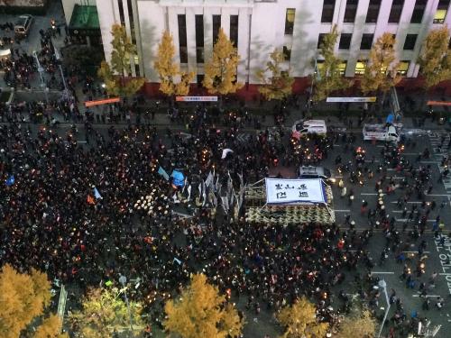 한편, 이날 촛불집회에서는 광화문광장 일대에 노점상과 편의점 등에서 파는 생수와 커피, 김밥 등을 구입하려는 시민들로 북새통을 이뤘으며 인근 일부 식당은 재료가 동이 나기도 했다.