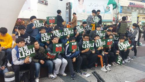 하지만 이날 집회에서는 박근혜 '지지'와 '퇴진' 사이에서 갈림길에 선 대구의 모습도 그대로 엿보였다. 대구에서 가장 번화한 상권 앞에서 열린 집회는 박근혜 하야를 외치는 사람들과 이에 아랑곳하지 않고 데이트와 쇼핑을 즐기는 사람들로 대조를 이뤘다. 대구에서 열린 집회에 모두 참가했다는 박○○씨는 "처음 박근혜 퇴진 시위를 할 때는 어르신들이 손가락질하고 갑자기 뛰어와서 소리를 지르기도 했다"며 "지금은 나아진 편이고, 저분들도 우리 모습을 보면 언젠가는 생각이 바뀔 것"이라고 위안을 삼았다.
