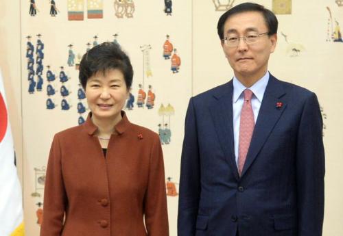 박근혜 대통령이 2015년 12월10일 오후 청와대에서 김수남 신임 검찰총장에게 임명장을 수여 후 기념촬영을 하고 있다. 사진/뉴시스