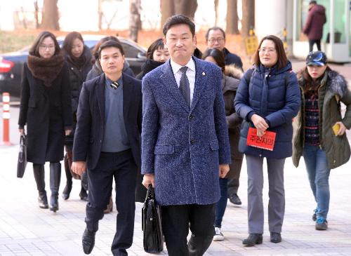법무법인 인강의 곽상언 변호사가 6일 오후 서울 서초동 서울중앙지방법원에 관계자들과 함께 박근혜 대통령 상대 국민 위자료 청구 소송 소장을 제출하기 위해 입장하고 있다. 사진/뉴시스
