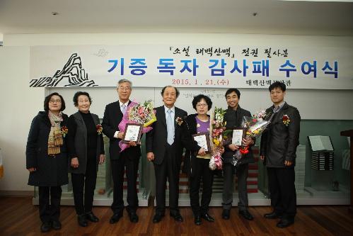 이번 감사패 수여식은 2014년 3월30일, 2015년 1월21일에 치러졌던 1, 2차에 이어 23개월 만에 열리는 3차 행사다. 12명의 독자들이 ‘태백산맥’ 전권 필사본을 추가로 기증하면서 개최하게 됐다.