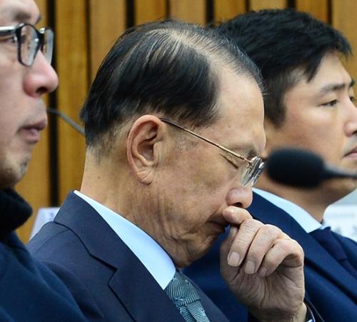 7일 오후 서울 여의도 국회에서 열린 박근혜 정부의 최순실 등 민간인에 의한 국정농단 의혹 사건 진상 규명을 위한 국정조사 특별위원회에서 김기춘씨가 생각에 잠겨있다. 사진/뉴시스