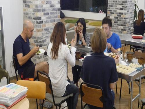 1층에는 누구나 사용할 수 있는 부엌과 라운지가 있다. 쉐어 하우스는 이제 일본의 새로운 주거문화로 자리 잡았다. 개인 생활과 공동생활이 엄격하게 분리된다는 점에서 젊은이들에게 인기를 얻고 있다.