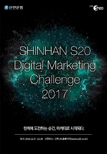 [뉴스토마토 이종용기자] 신한은행은 20대 고객들이 직접 디지털 채널 운영 방안을 기획하고 마케팅 아이디어를 제안할 수 있는 'S20 디지털 마케팅 챌린지 2017'을 개최한다고 12일 밝혔다.