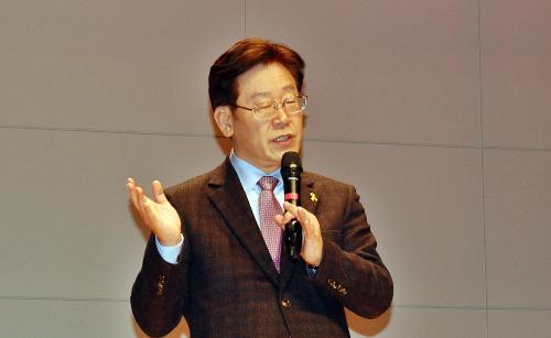 지난 11일 오후 이재명 성남시장이 전북 익산시 원광대학교에서 열린 시국 강연회에 참석해 발언하고 있다. 사진/뉴시스