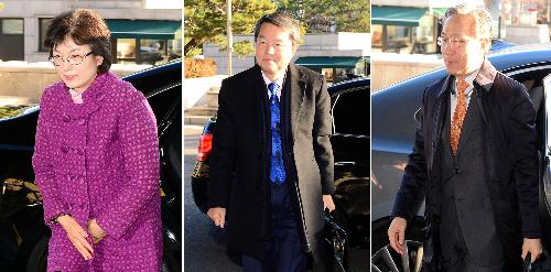 박근혜 대통령 탄핵심판 사건과 관련해 헌법재판소 '수명(受命) 재판관'으로 지정된 이정미(왼쪽부터), 이진성, 강일원 재판관이 15일 오전 서울 종로구 헌법재판소에 출근하고 있다. 사진/뉴시스