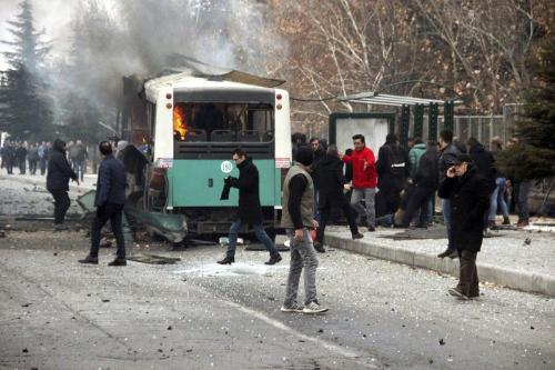 17일(현지시간) AP통신에 따르면 군인을 수송 중이던 버스가 카이세리의 에르지예스대학 인근 도로에서 자살 차량 폭탄 공격을 받았다.