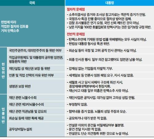 탄핵소추에 대한 박근혜 대통령의 답변서 주요 내용. 자료/국회