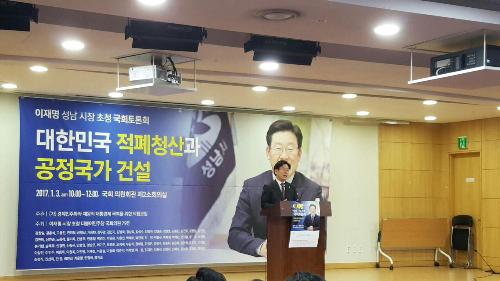 3일 이재명 성남시장이 서울 여의도 국회의원회관에서 열린 '이재명 성남시장 초청 국회토론회, 대한민국 적폐청산과 공정국가 건설'에서 발언하고 있다. 사진/뉴스토마토