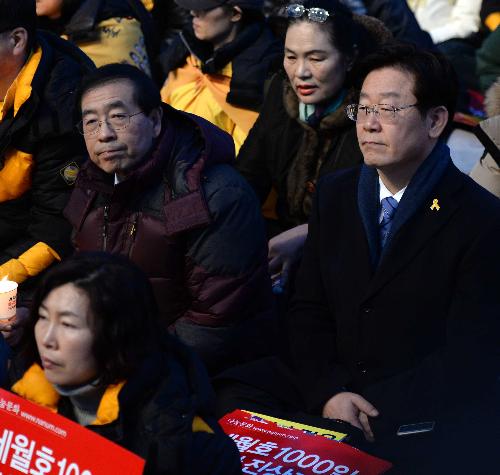 2017년 정유년 새해 첫 주말인 7일 오후 서울 종로구 세종대로 광화문 광장에서 열린 '박근혜 대통령 즉각 퇴진을 촉구하는 제11차 주말 촛불집회'에 박원순 서울시장과 이재명 성남시장이 참석했다. 사진/뉴시스