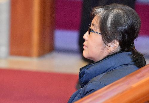 '비선실세' 최순실이 16일 오전 서울 종로구 헌법재판소에서 열린 박근혜 대통령 탄핵심판 5차 변론기일에 증인으로 출석해 대기석에서 앉아 있다. 사진/뉴시스