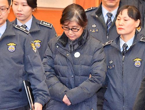 '비선실세' 최순실이 16일 오전 서울 종로구 헌법재판소에서 열린 박근혜 대통령 탄핵심판 5차 변론기일에 증인으로 출석하고 있다. 사진/뉴시스